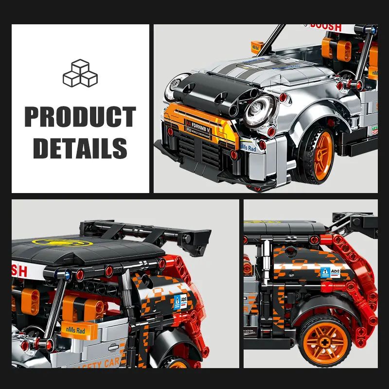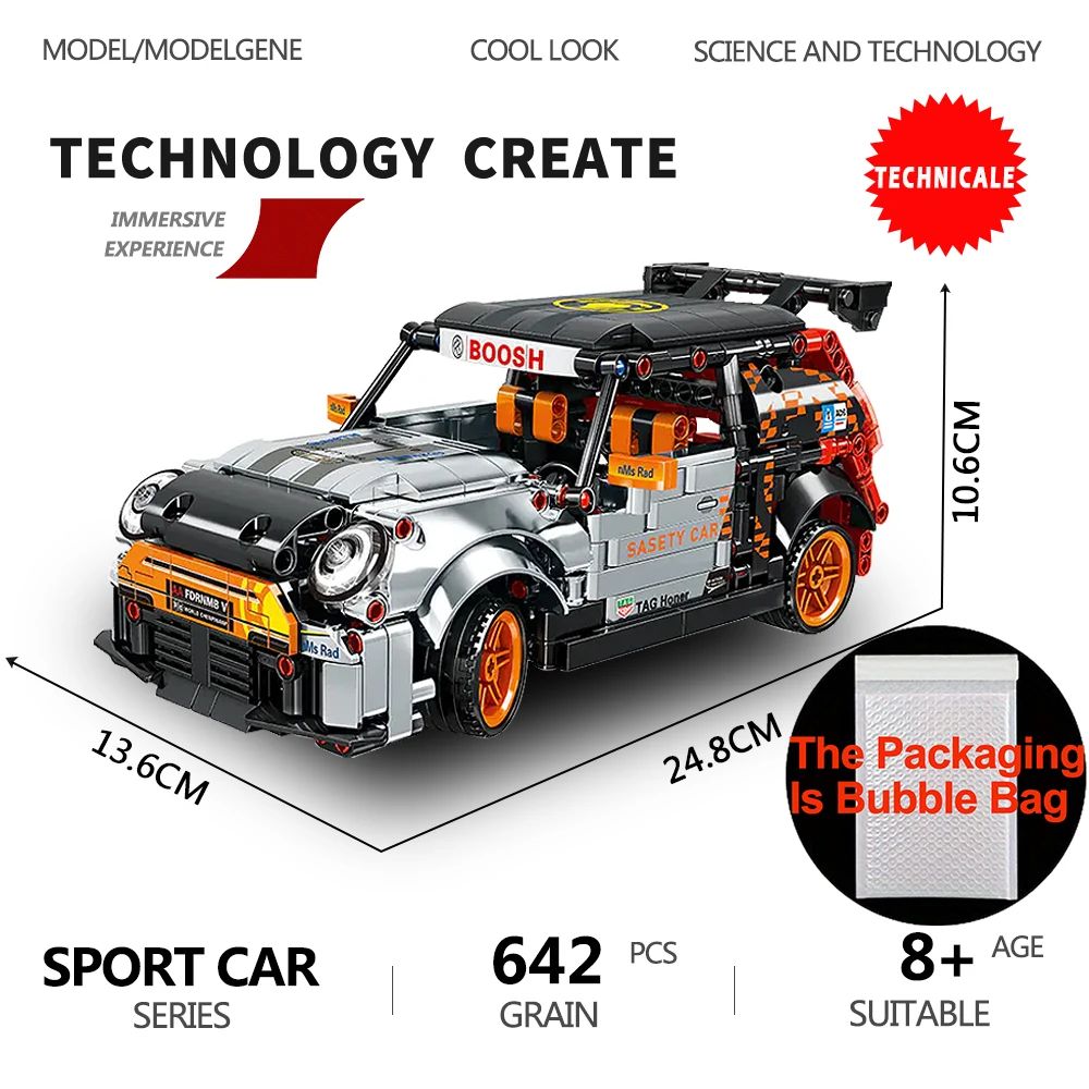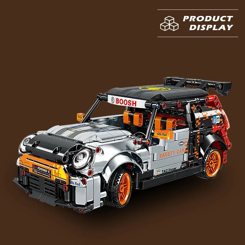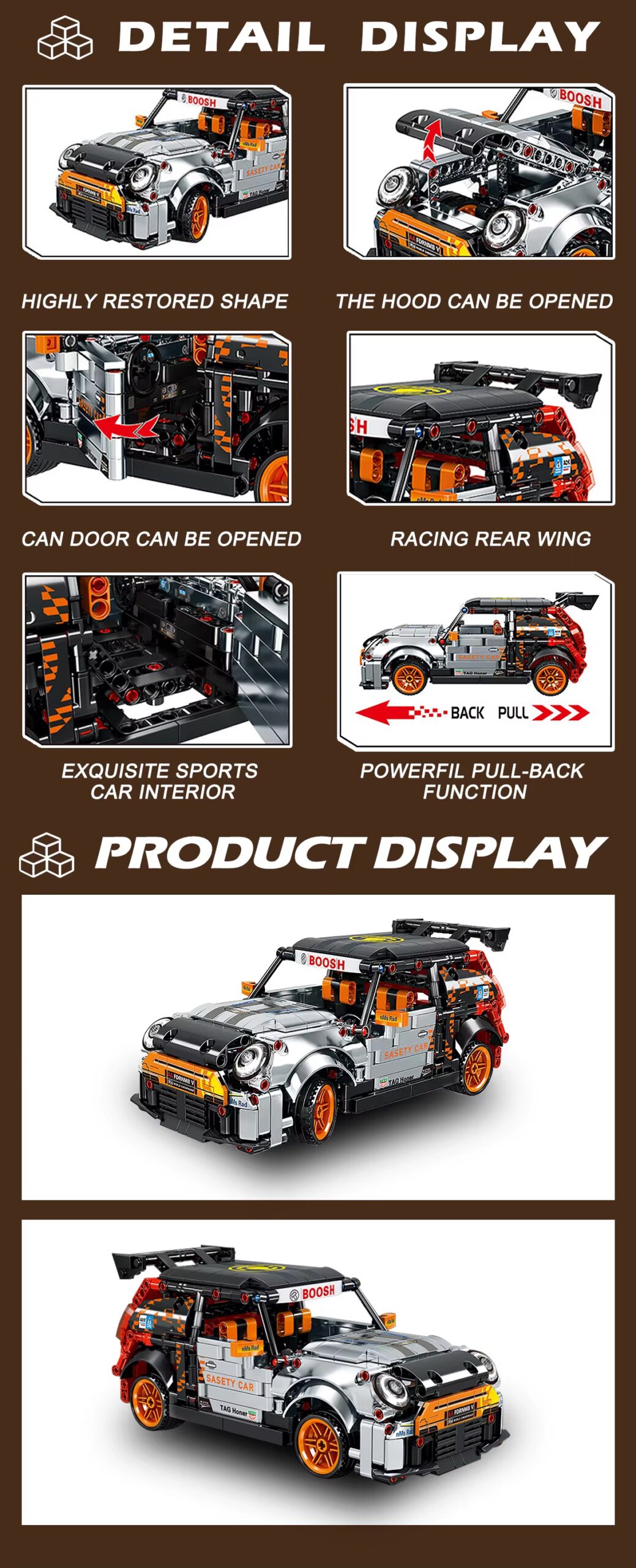 Set de bloques de construcción Mini Cooper con retroceso, diseño realista y ladrillos duraderos. Fomenta creatividad, aprendizaje práctico y razonamiento espacial.